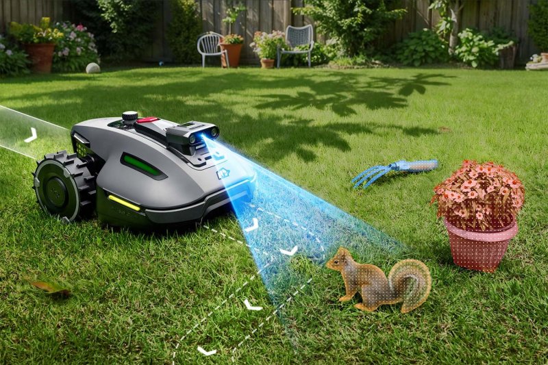 Systém UltraSense AI Vision umožňuje sekačce YUKA mini detekovat překážky na vzdálenost pouhých 2,5 cm a vyhýbat se jim, automaticky přepočítává dráhu pro efektivní sečení a zajišťuje bezpečnost dětí a domácích zvířat.